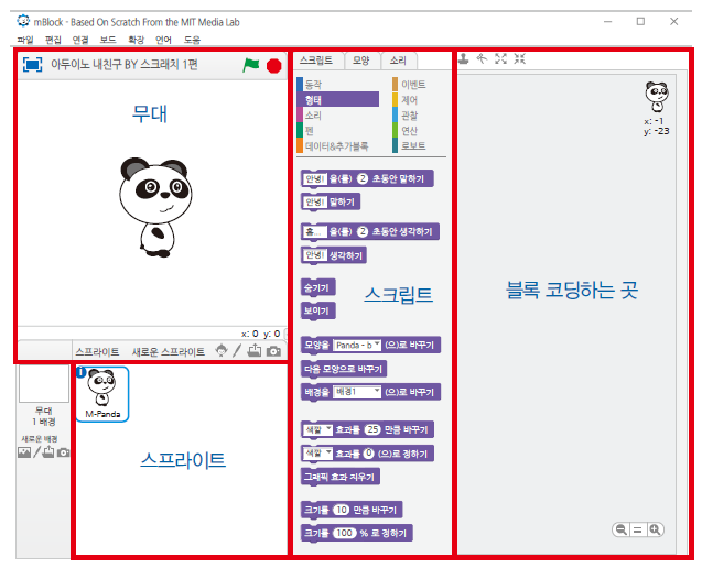 스크래치로 코딩하기 위해서 알아야 할 것이 있습니다. 바로 스프라이트, 무대, 스크립트입니다.